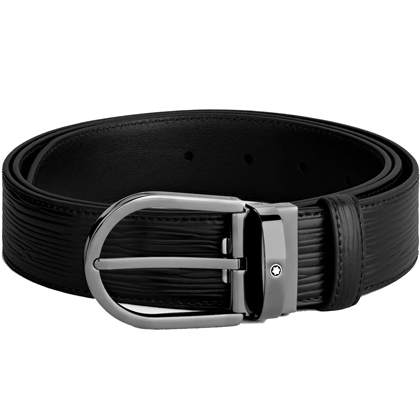 Черный кожаный ремень с подковообразной пряжкой 35мм от магазина премиальных ручек Premium Pens в Старом Осколе.